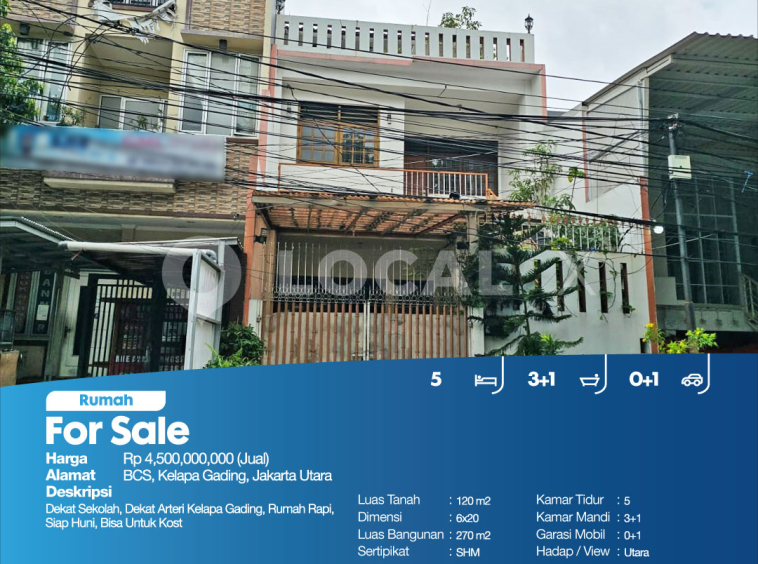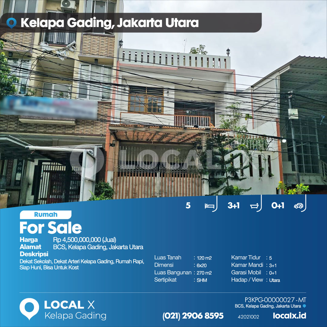 Dekat Sekolah, Dekat Arteri Kelapa Gading, Rumah Rapi, Siap Huni, Bisa Untuk Kost