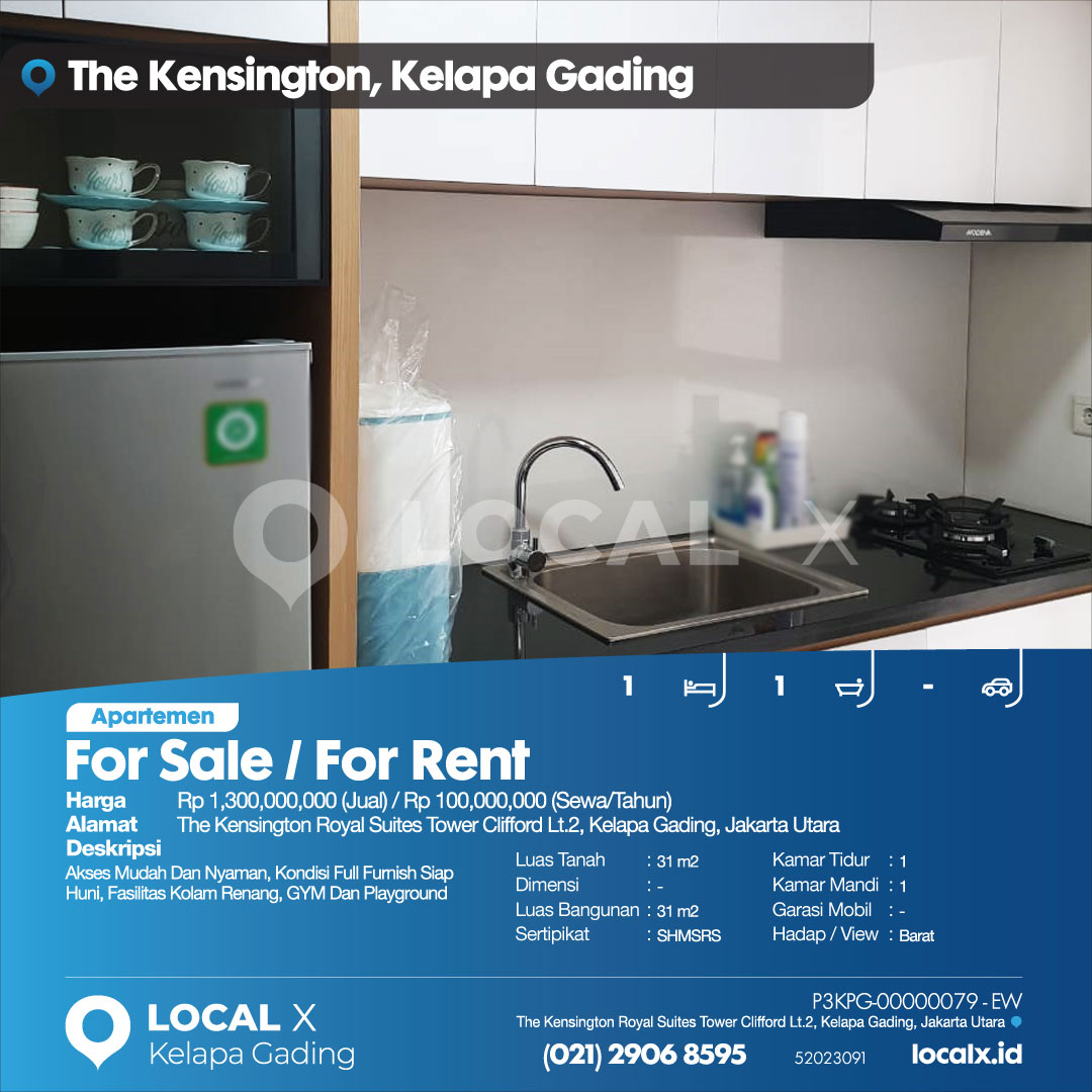 • Address The Kensington Royal Suites Tower Clifford Lt.2, Kelapa Gading, Jakarta Utara