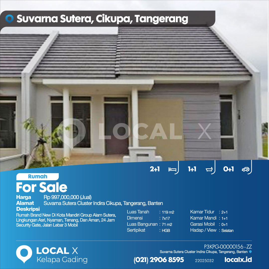 • Address Suvarna Sutera Cluster Indira Cikupa, Tangerang, Banten