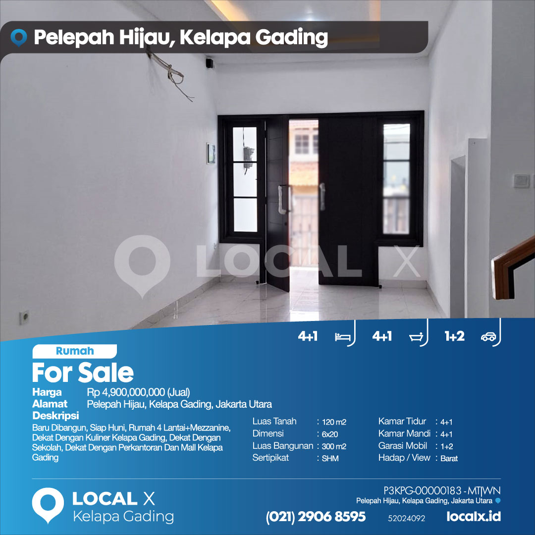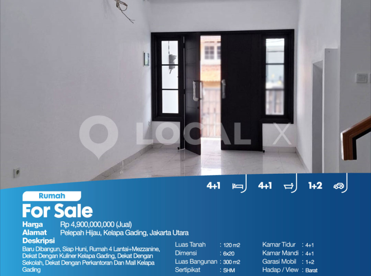 Baru Dibangun, Siap Huni, Rumah 4 Lantai+Mezzanine, Dekat Dengan Kuliner Kelapa Gading, Dekat Dengan Sekolah, Dekat Dengan Perkantoran Dan Mall Kelapa Gading