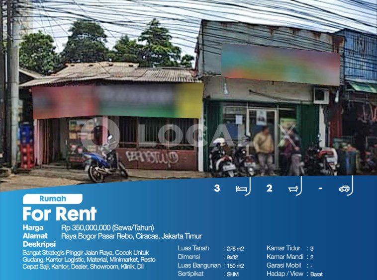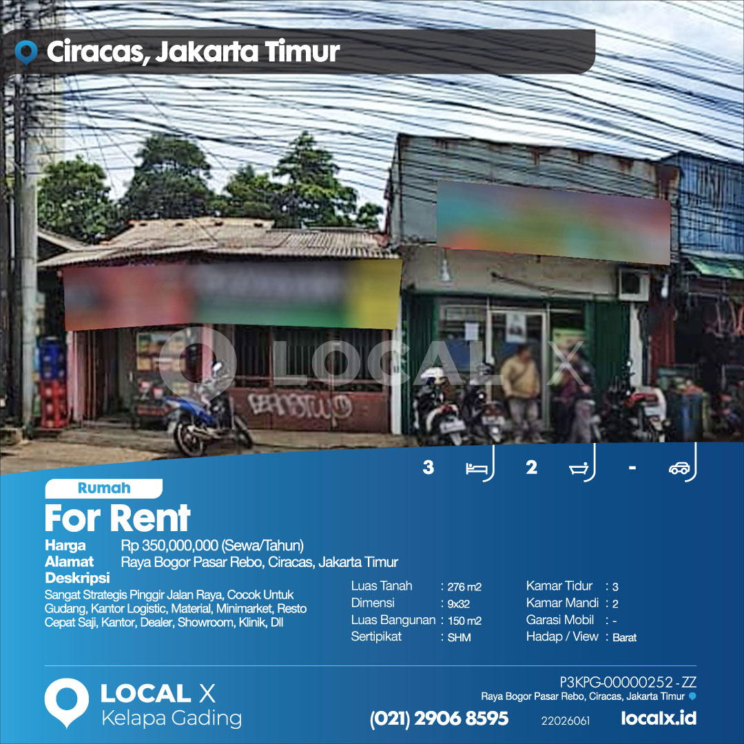 P3KPG-00000252-ZZ-S (For Rent – Sewa) Rumah Raya Bogor Pasar Rebo, Ciracas, Jakarta Timur