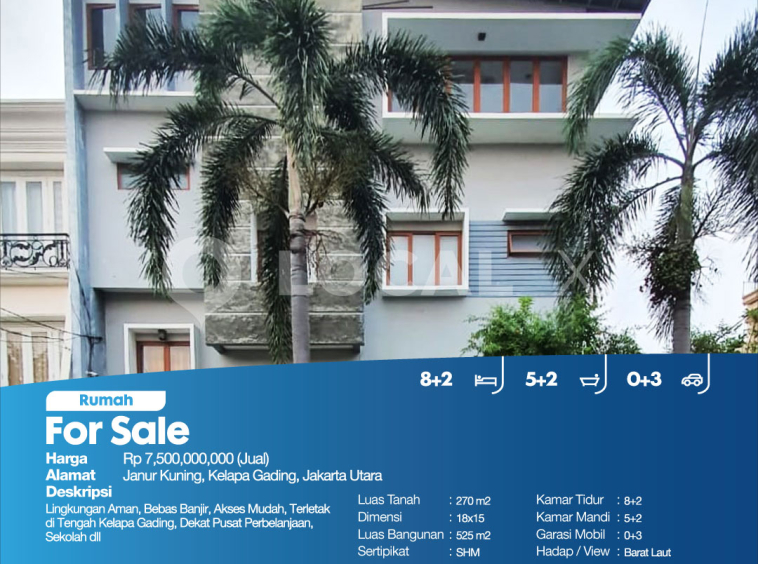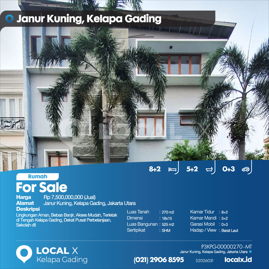 Lingkungan Aman, Bebas Banjir, Akses Mudah, Terletak di Tengah Kelapa Gading, Dekat Pusat Perbelanjaan, Sekolah dll
