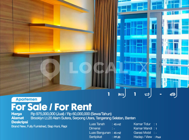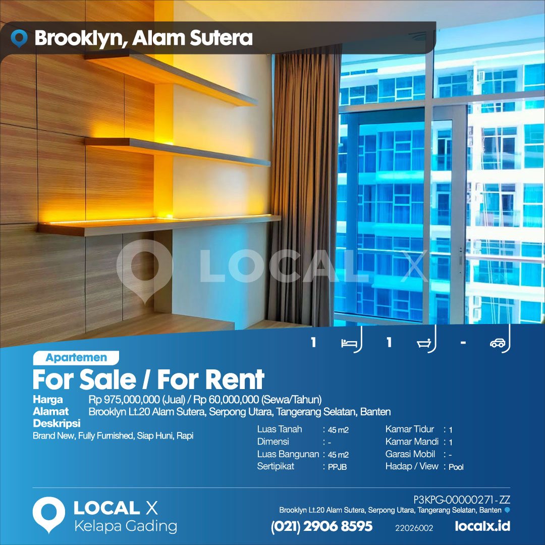 • Address Brooklyn Lt.20 Alam Sutera, Serpong Utara, Tangerang Selatan, Banten