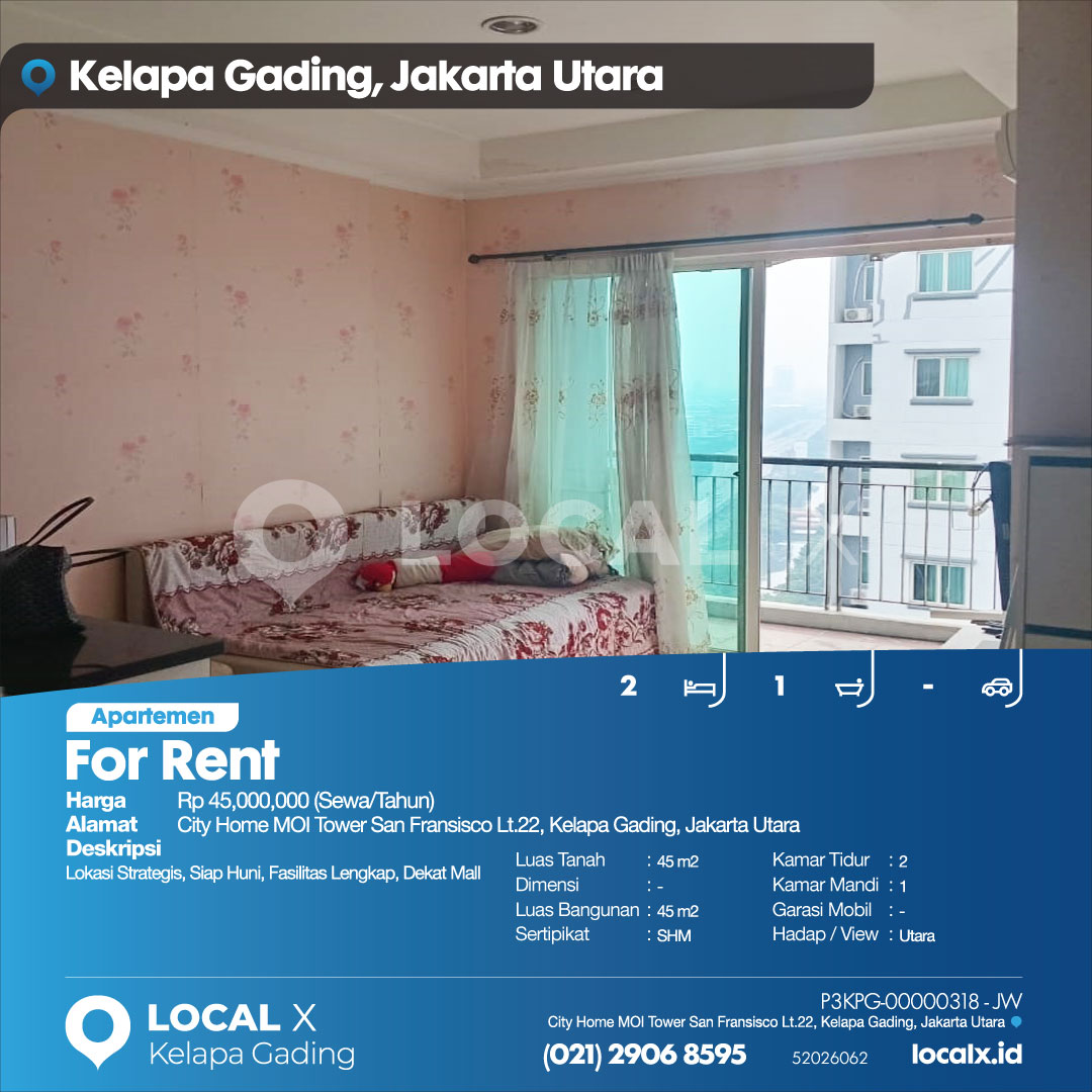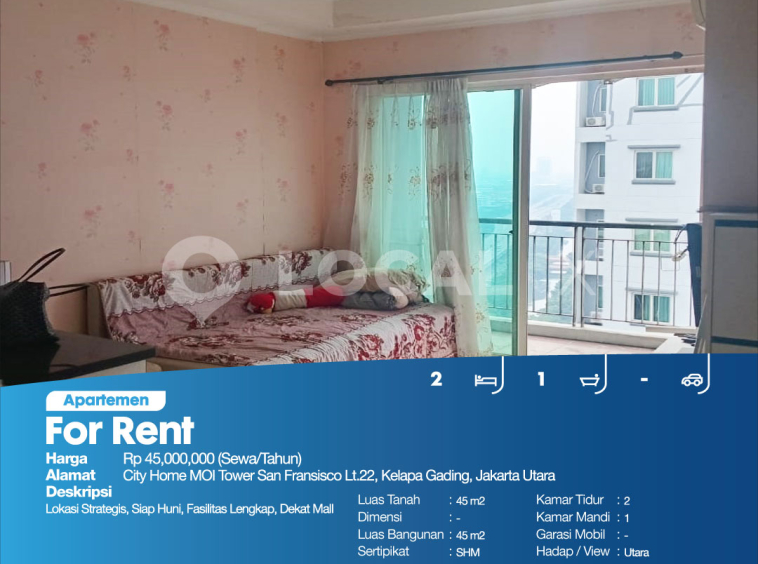 • Address City Home MOI Tower San Fransisco Lt.22, Kelapa Gading, Jakarta Utara