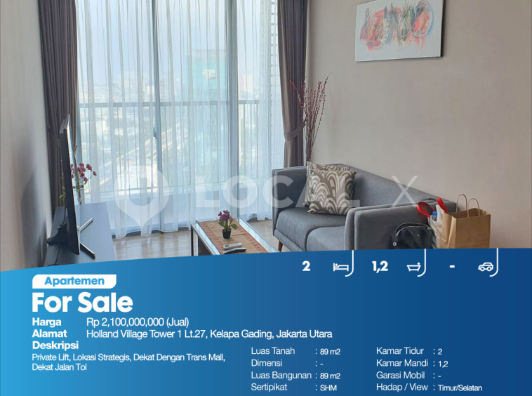 P3KPG-00000321-JW-J (For Sale – Jual) Apartemen Holland Village Tower 1 Lt.27, Kelapa Gading, Jakarta Utara