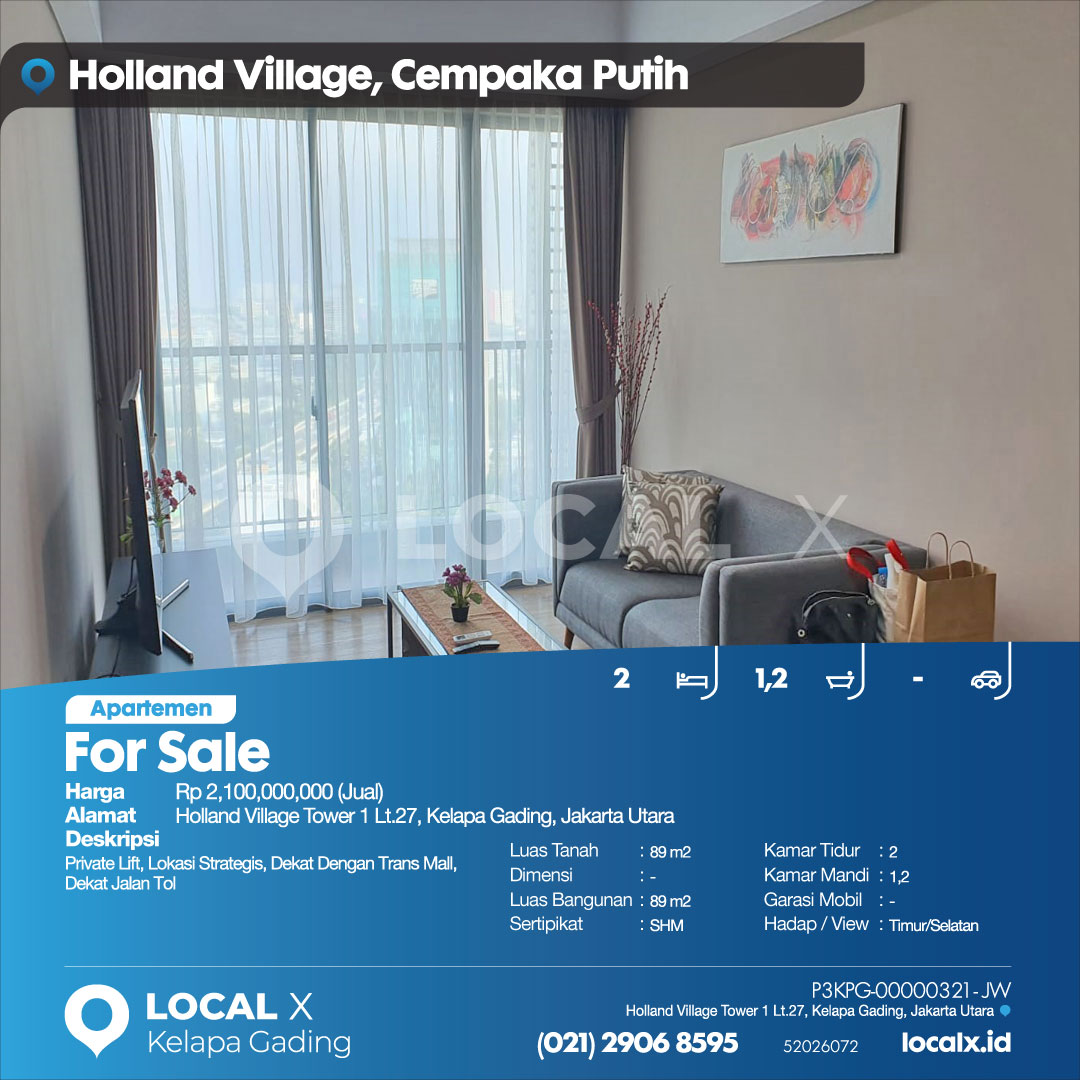 • Address Holland Village Tower 1 Lt.27, Kelapa Gading, Jakarta Utara
