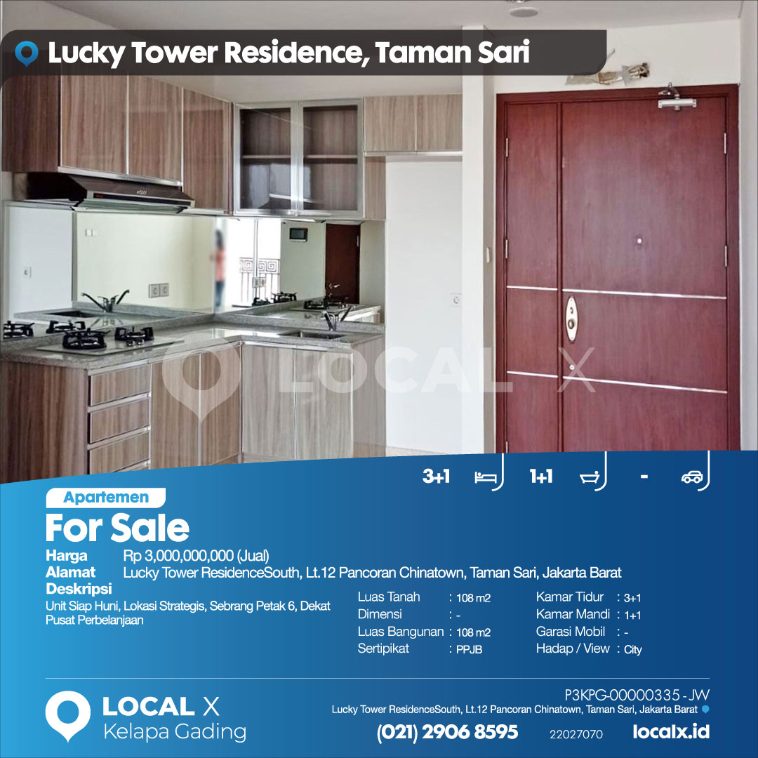 Lucky Tower ResidenceSouth, Lt.12 Pancoran Chinatown, Taman Sari, Jakarta Barat