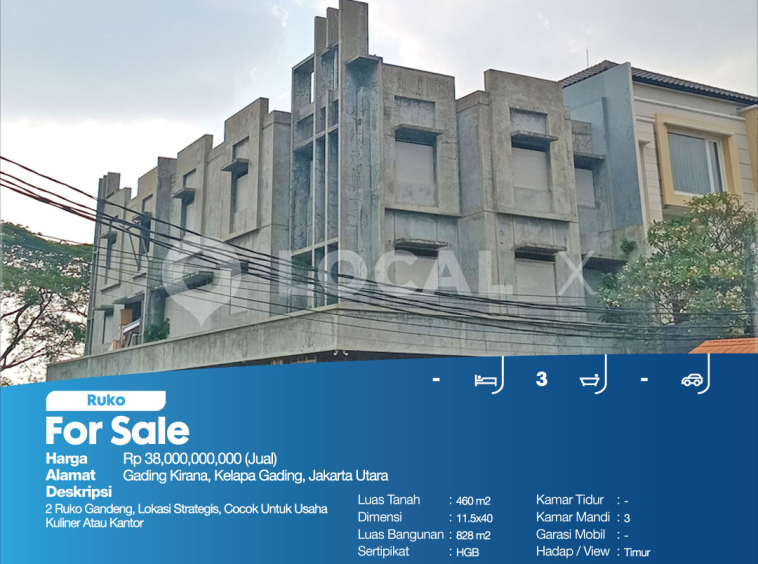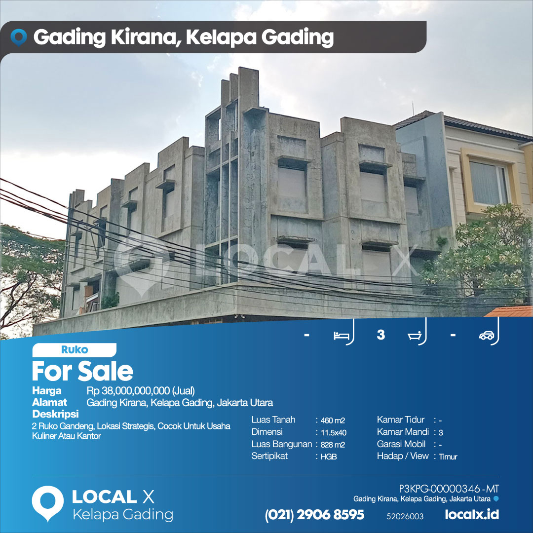 P3KPG-00000346-MT-J (For Sale – Jual) Ruko Gading Kirana, Kelapa Gading, Jakarta Utara