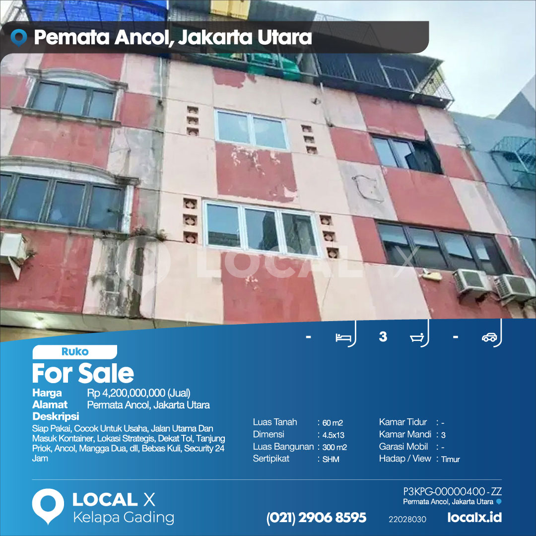 P3KPG-00000400-ZZ-J (For Sale – Jual) Ruko Permata Ancol, Jakarta Utara