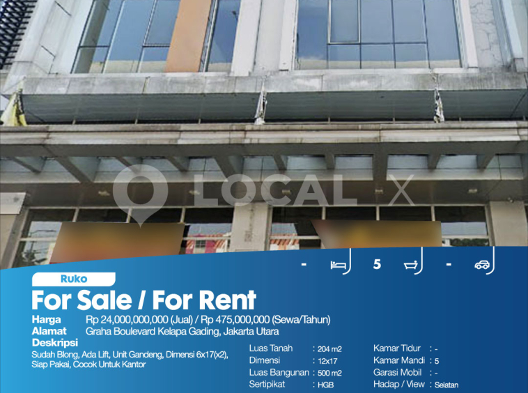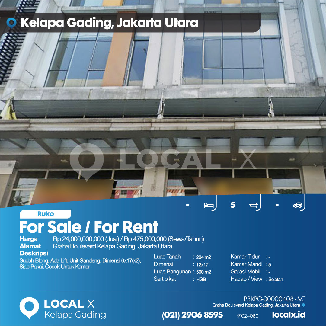 P3KPG-00000408-MT-J (For Sale – Jual) Ruko Graha Boulevard Kelapa Gading, Jakarta Utara