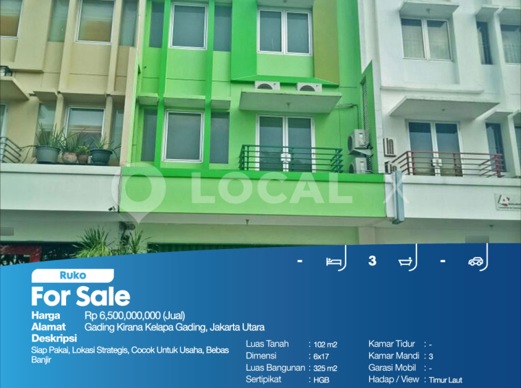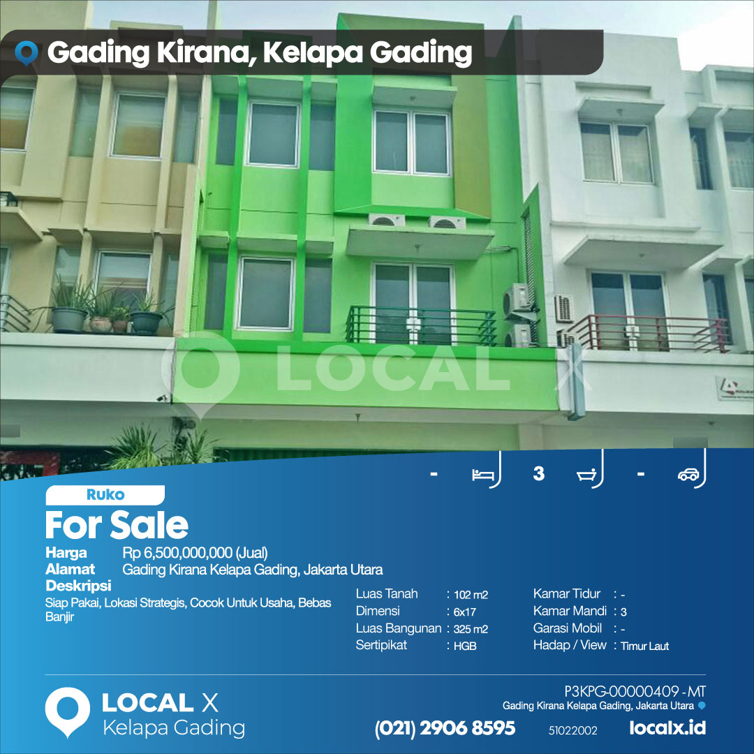 P3KPG-00000409-MT-J (For Sale – Jual) Ruko Gading Kirana Kelapa Gading, Jakarta Utara