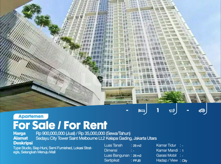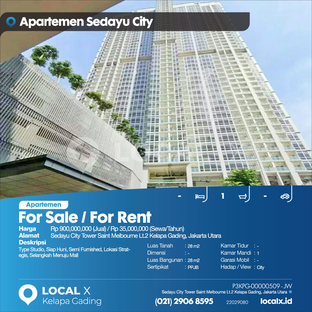 Type Studio, Siap Huni, Semi Furnished, Lokasi Strategis, Selangkah Menuju Mall