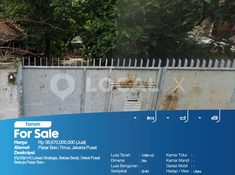 (Rp30jt/m²) Lokasi Strategis, Bebas Banjir, Dekat Pusat Belanja Pasar Baru