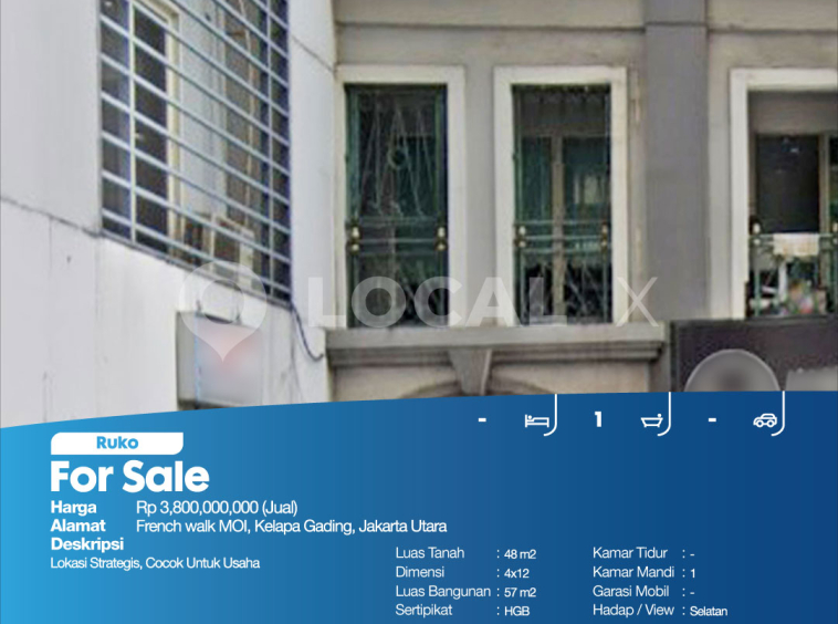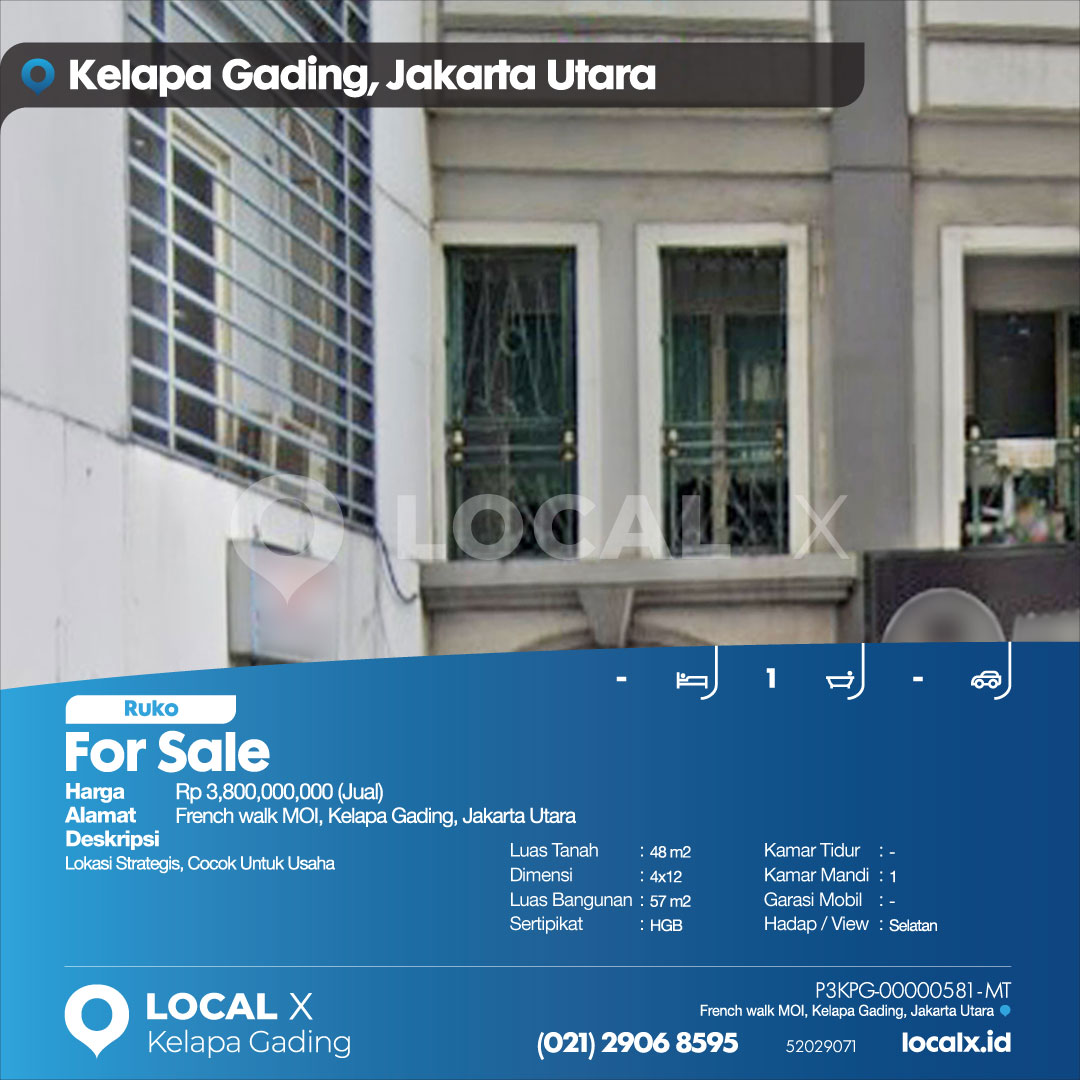 P3KPG-00000581-MT-J (For Sale – Jual) Ruko French walk MOI, Kelapa Gading, Jakarta Utara