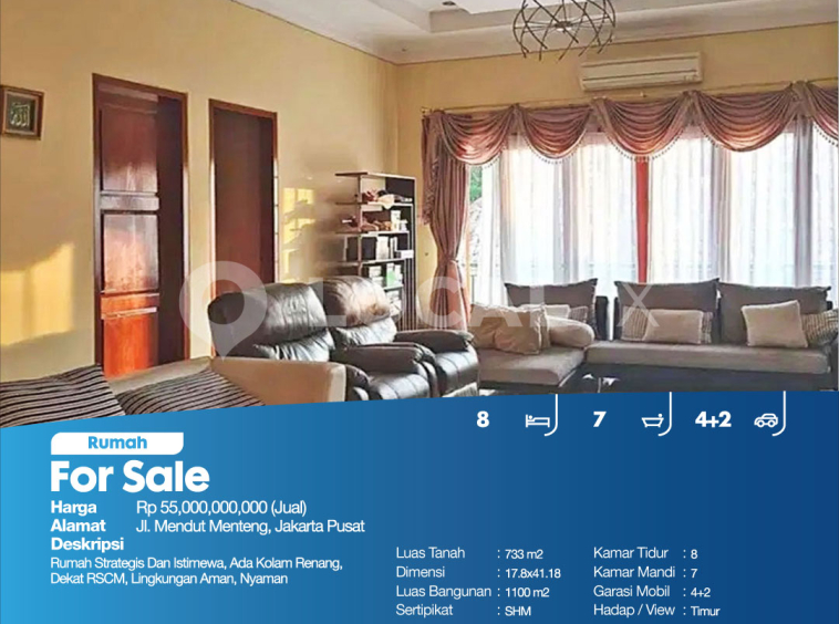 Rumah Strategis Dan Istimewa, Ada Kolam Renang, Dekat RSCM, Lingkungan Aman, Nyaman