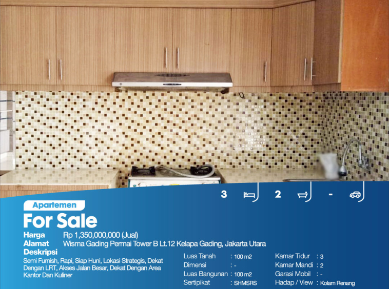 Semi Furnish, Rapi, Siap Huni, Lokasi Strategis, Dekat Dengan LRT, Akses Jalan Besar, Dekat Dengan Area Kantor Dan Kuliner