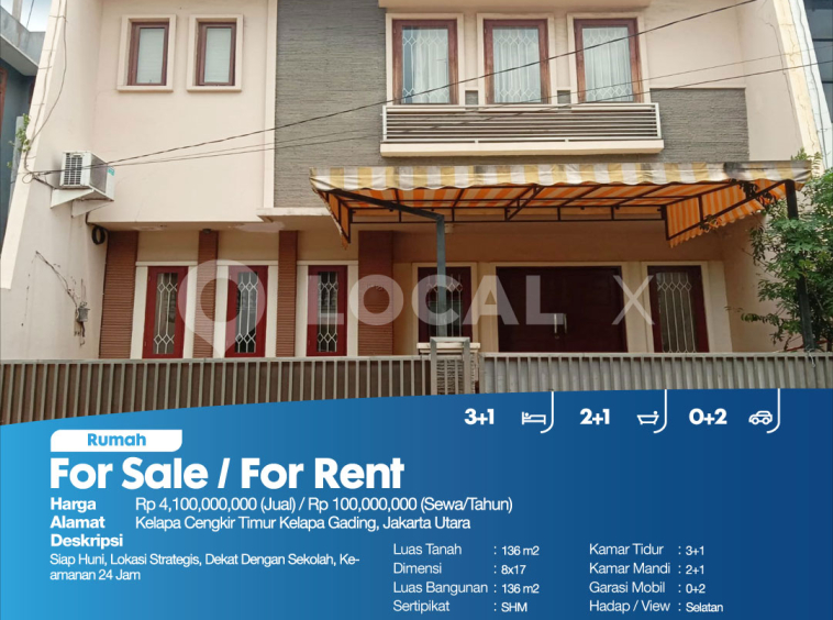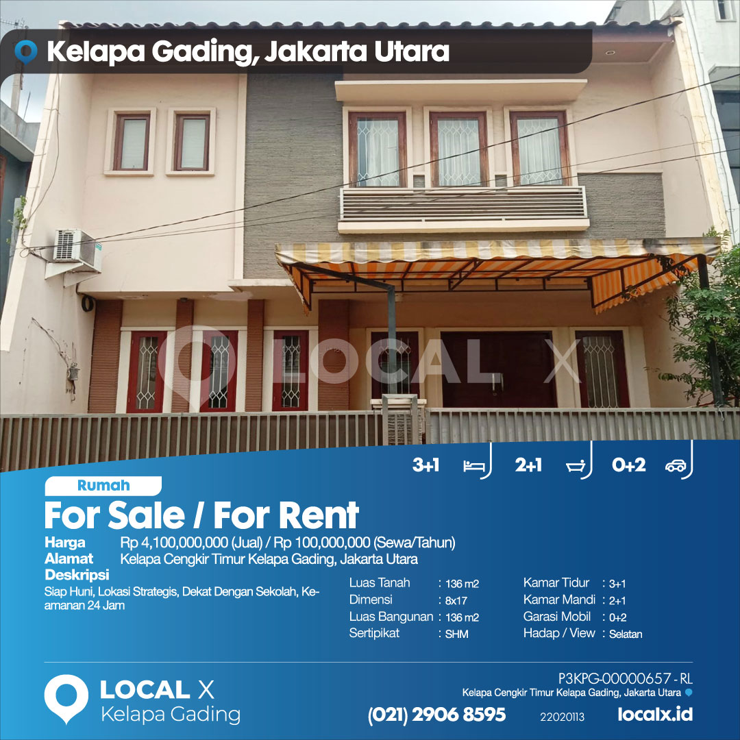 P3KPG-00000657-RL-J (For Sale – Jual) Rumah Kelapa Cengkir Timur Kelapa Gading, Jakarta Utara