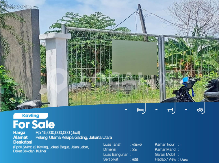 P3KPG-00000659-RL-J (For Sale – Jual) Kavling Tanah Pelangi Utama Kelapa Gading, Jakarta Utara