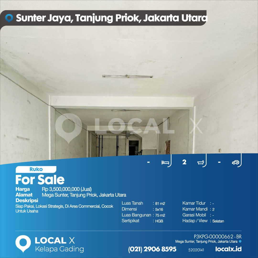 P3KPG-00000662-BR-J (For Sale – Jual) Ruko Mega Sunter, Tanjung Priok, Jakarta Utara