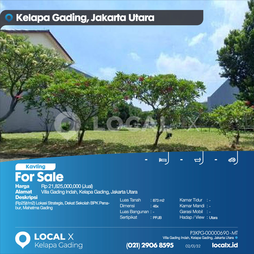 P3KPG-00000690-MT-J (For Sale – Jual) Kavling Tanah Villa Gading Indah, Kelapa Gading, Jakarta Utara