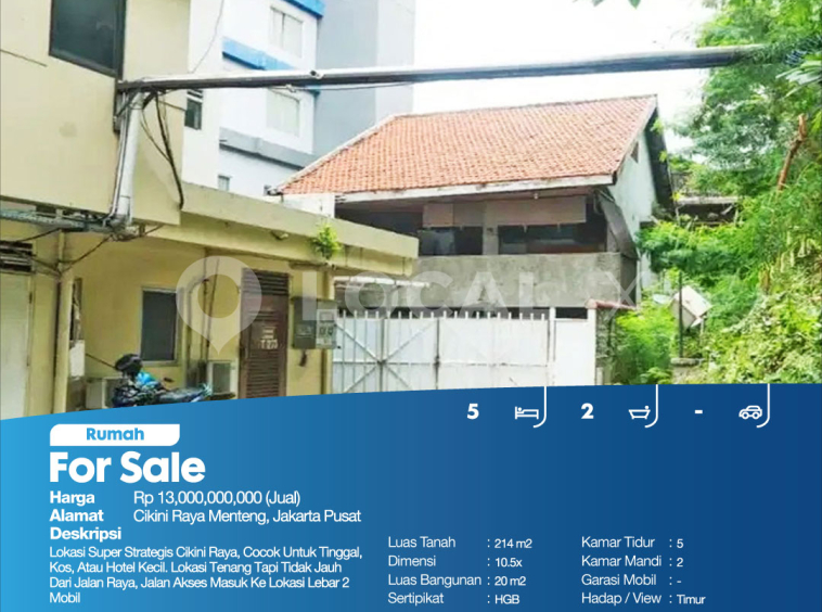 Description:Lokasi Super Strategis Cikini Raya, Cocok Untuk Tinggal, Kos, Atau Hotel Kecil. Lokasi Tenang Tapi Tidak Jauh Dari Jalan Raya, Jalan Akses Masuk Ke Lokasi Lebar 2 Mobil
