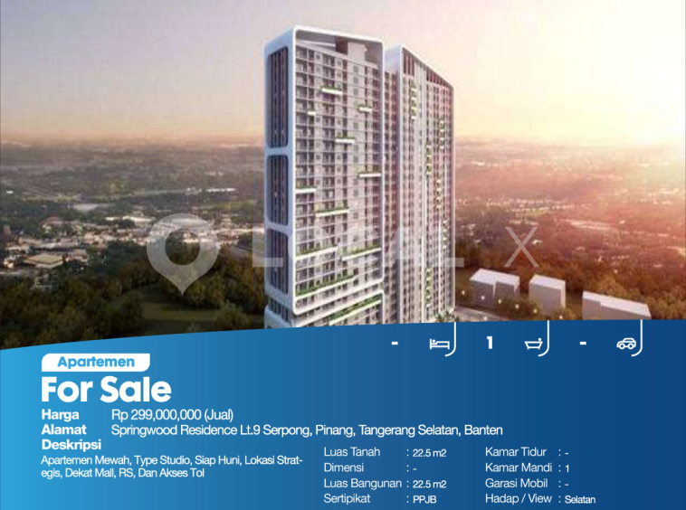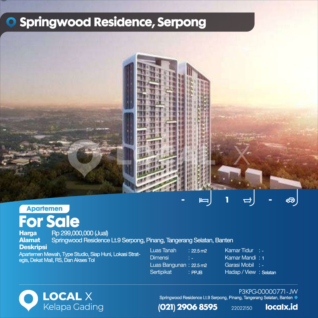 P3KPG-00000771-JW-J (For Sale – Jual) Apartemen Springwood Residence Lt.9 Serpong, Pinang, Tangerang Selatan, Banten