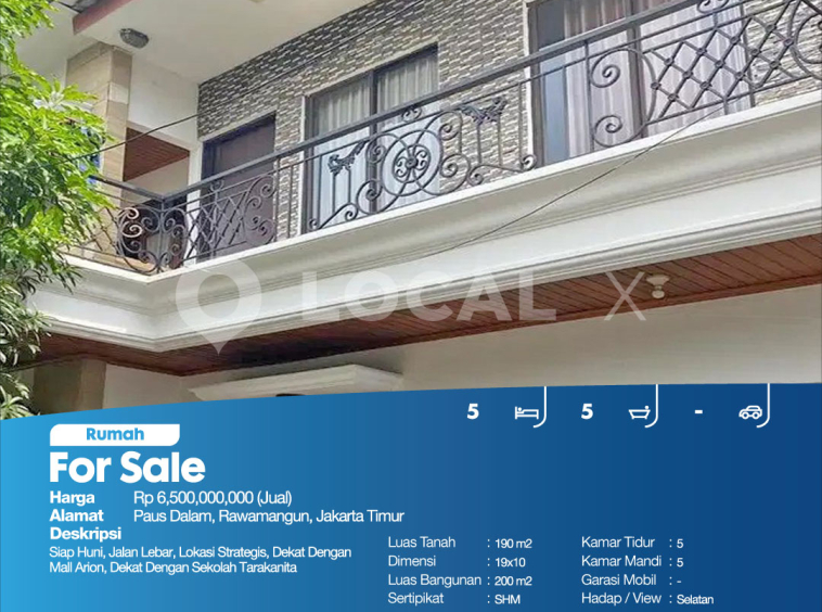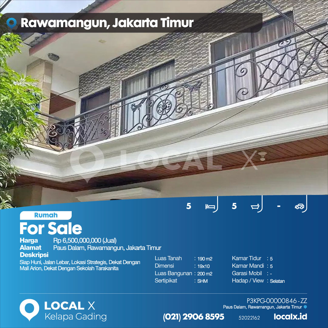 P3KPG-00000846-ZZ-J (For Sale – Jual) Rumah Paus Dalam, Rawamangun, Jakarta Timur