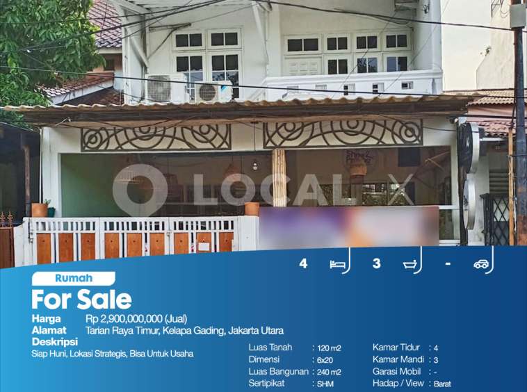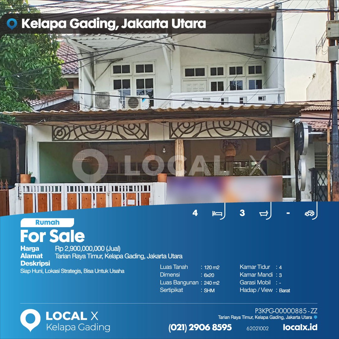 P3KPG-00000885-ZZ-J (For Sale – Jual) Rumah Tarian Raya Timur, Kelapa Gading, Jakarta Utara