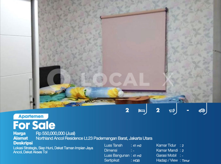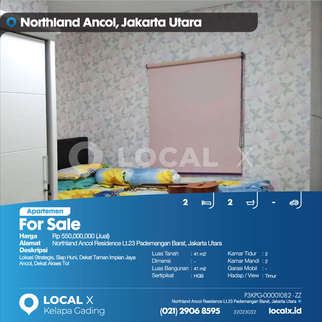 • Address Northland Ancol Residence Lt.23 Pademangan Barat, Jakarta Utara