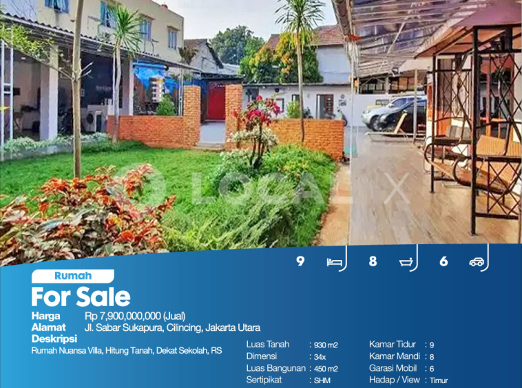Rumah Nuansa Villa, Hitung Tanah, Dekat Sekolah, RS