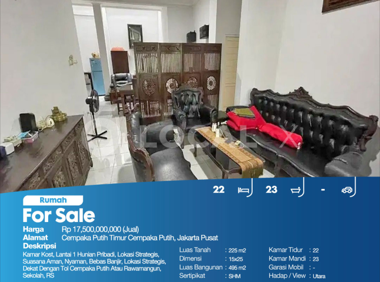 Description:Kamar Kost, Lantai 1 Hunian Pribadi, Lokasi Strategis, Suasana Aman, Nyaman, Bebas Banjir, Lokasi Strategis, Dekat Dengan Tol Cempaka Putih Atau Rawamangun, Sekolah, RS