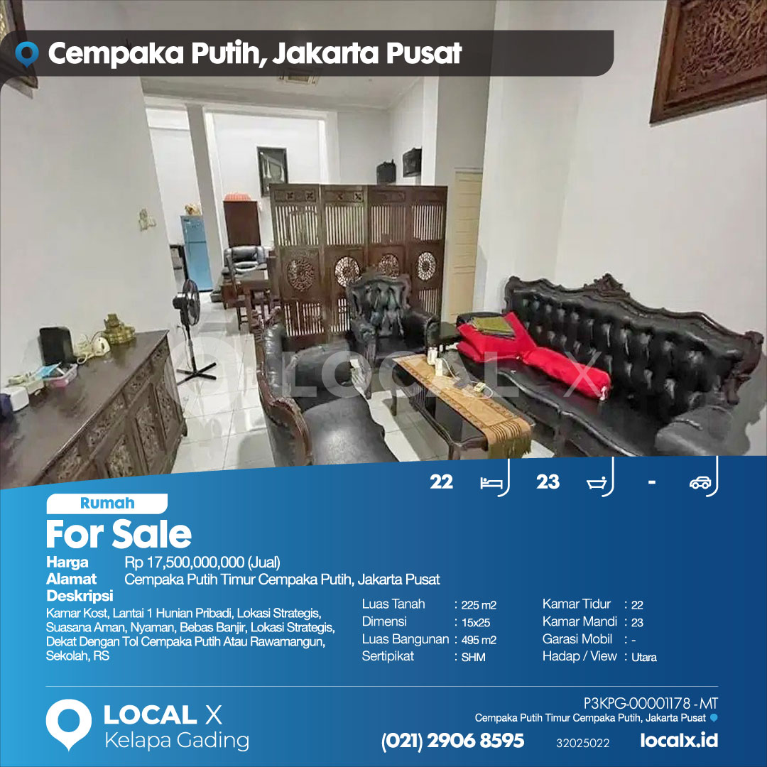 P3KPG-00001178-MT-J (For Sale – Jual) Rumah Cempaka Putih Timur Cempaka Putih, Jakarta Pusat