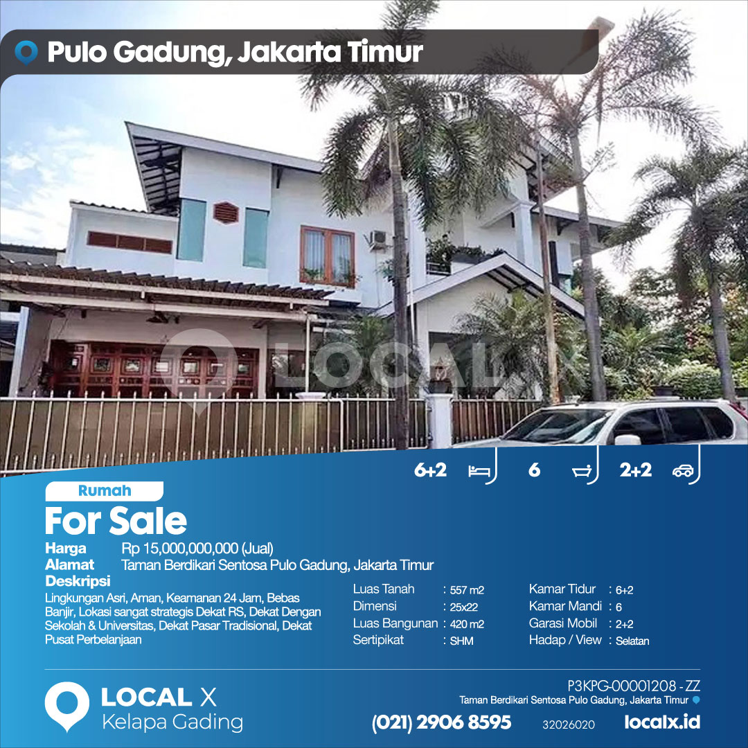 P3KPG-00001208-ZZ-J (For Sale – Jual) Rumah Taman Berdikari Sentosa Pulo Gadung, Jakarta Timur