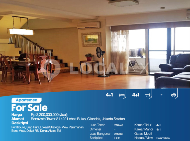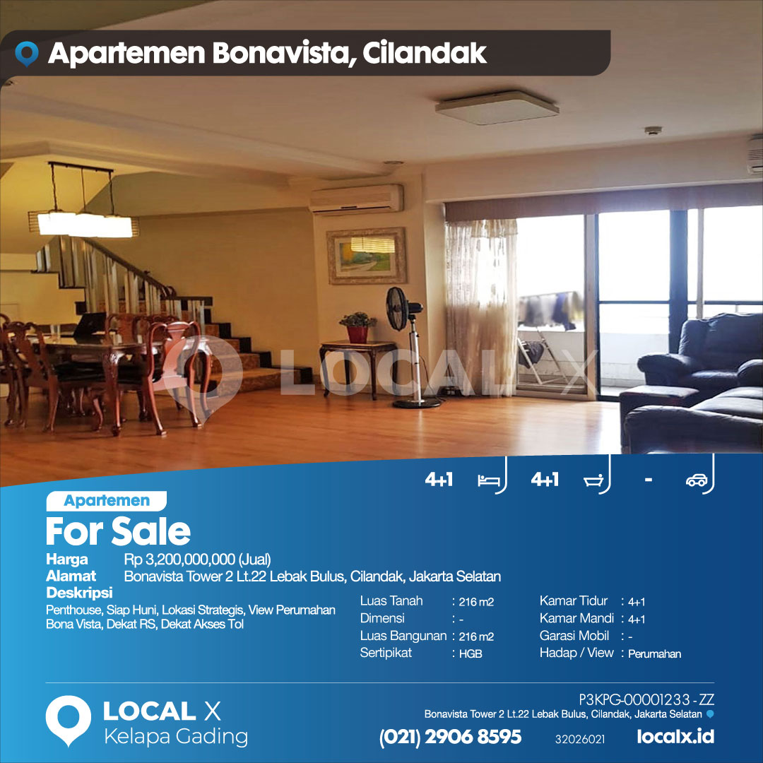 Penthouse, Siap Huni, Lokasi Strategis, View Perumahan Bona Vista, Dekat RS, Dekat Akses Tol