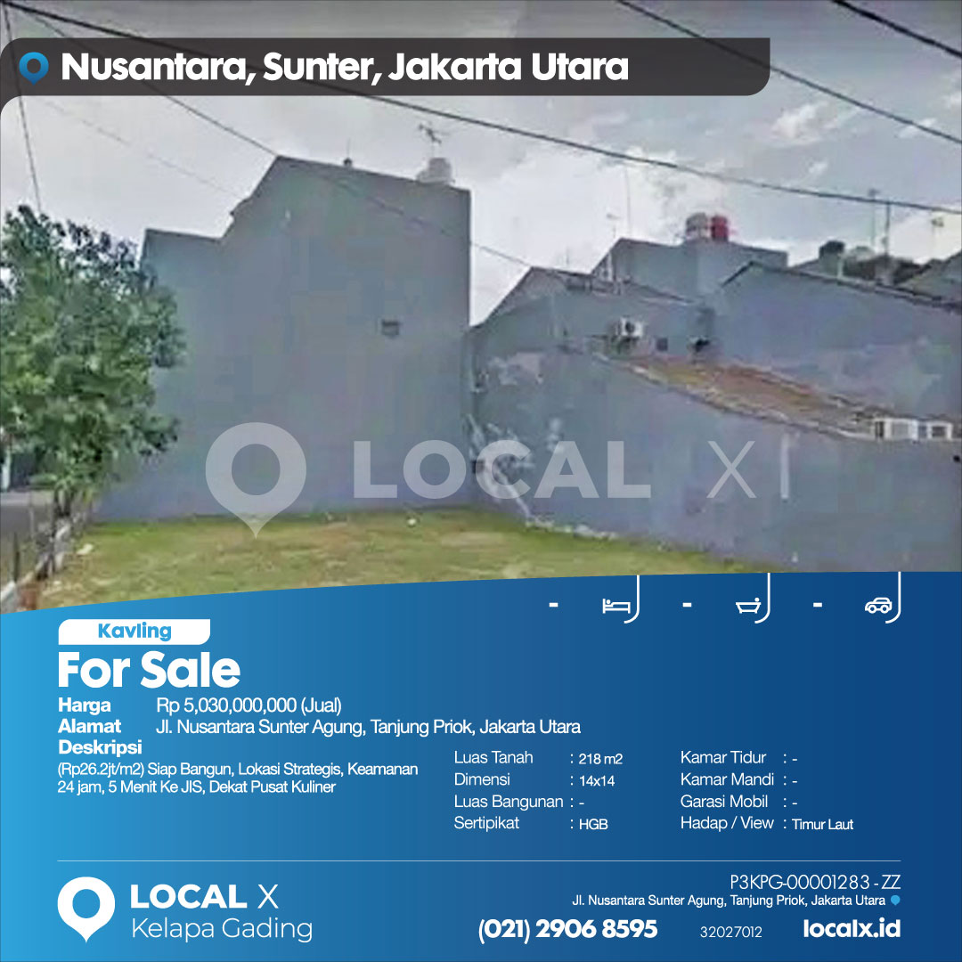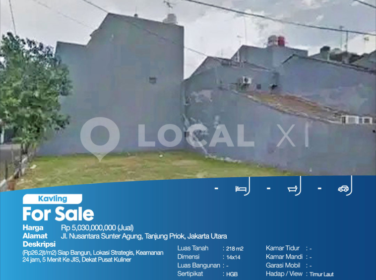 (Rp26.2jt/m2) Siap Bangun, Lokasi Strategis, Keamanan 24 jam, 5 Menit Ke JIS, Dekat Pusat Kuliner