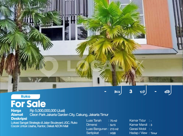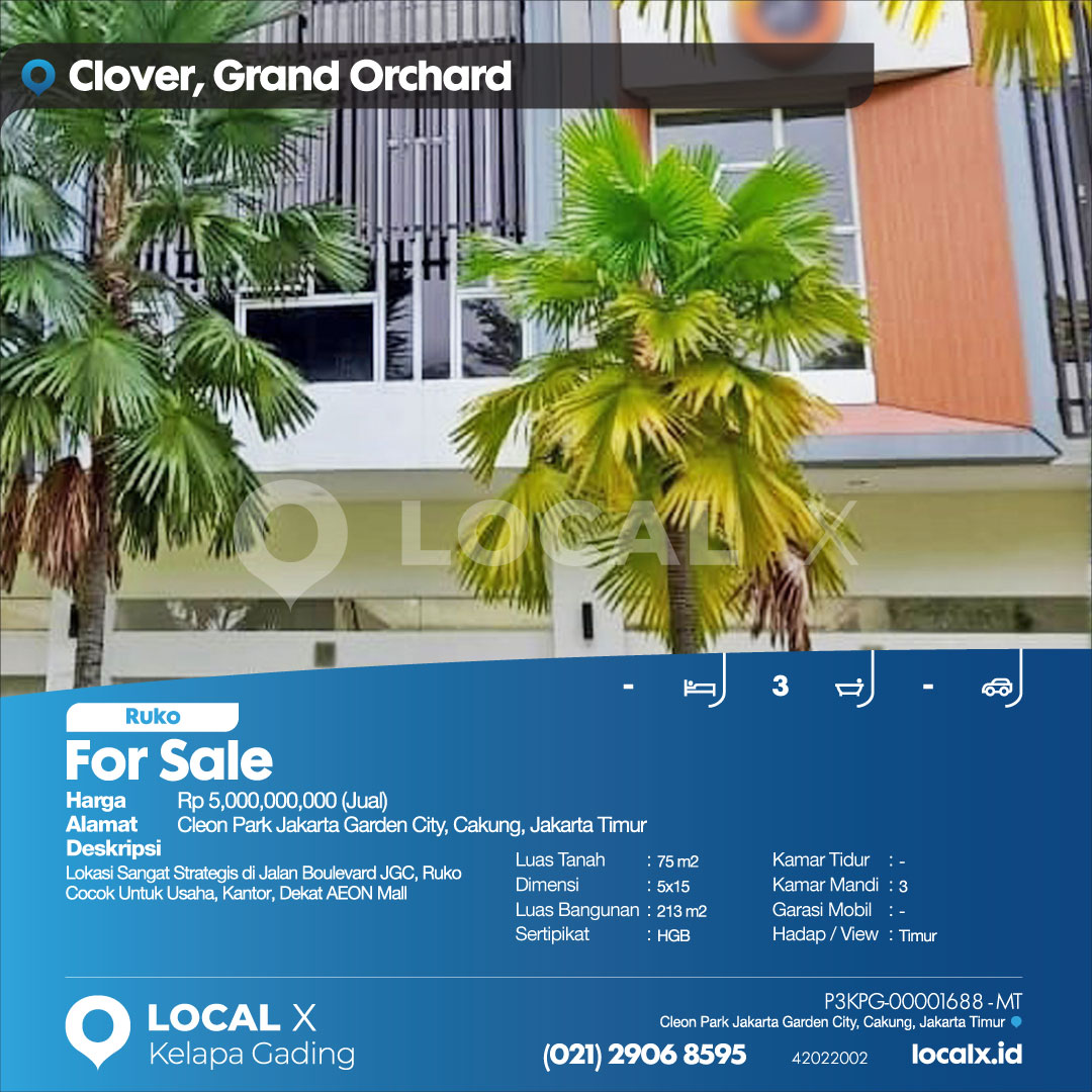 P3KPG-00001688-MT-J (For Sale – Jual) Ruko Cleon Park Jakarta Garden City, Cakung, Jakarta Timur
