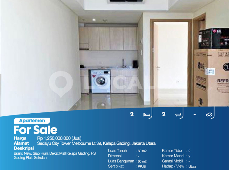 P3KPG-00001731-JW-J (For Sale – Jual) Apartemen Sedayu City Tower Melbourne Lt.39, Kelapa Gading, Jakarta Utara