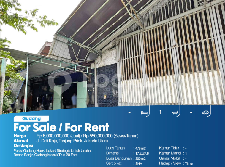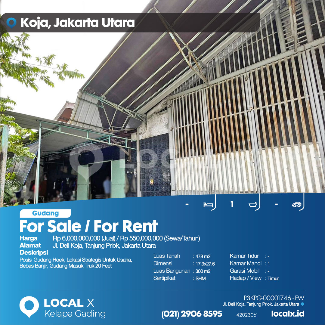 P3KPG-00001746-EW-J (For Sale – Jual) Gudang Jl. Deli Koja, Tanjung Priok, Jakarta Utara