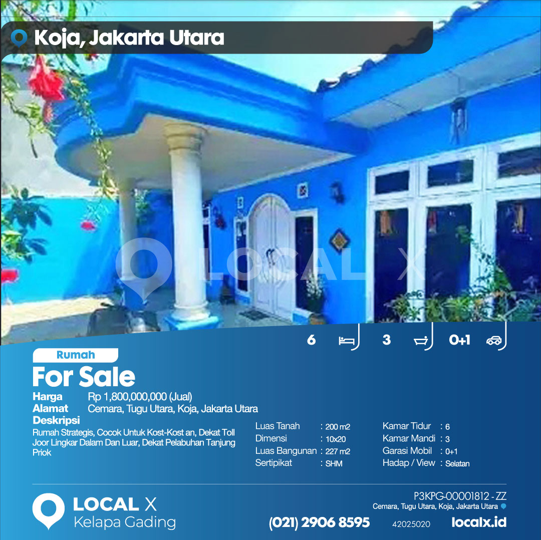 P3KPG-00001812-ZZ-J (For Sale – Jual) Rumah Cemara, Tugu Utara, Koja, Jakarta Utara