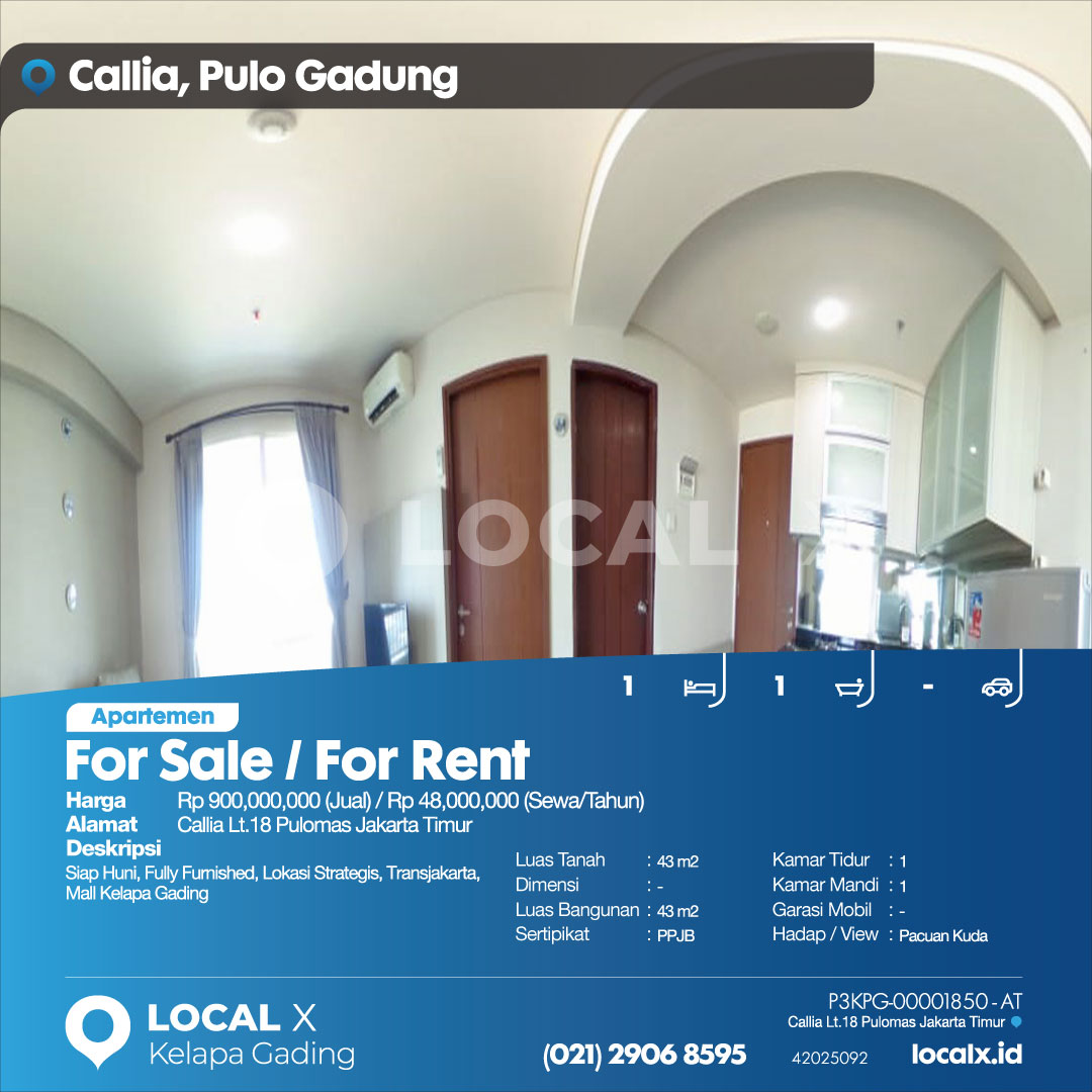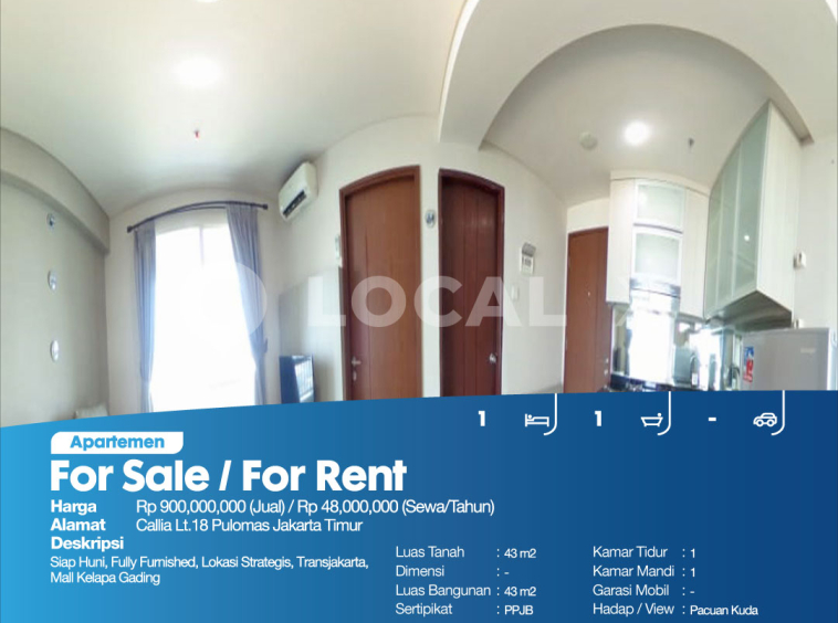 Siap Huni, Fully Furnished, Lokasi Strategis, Transjakarta, Mall Kelapa Gading
