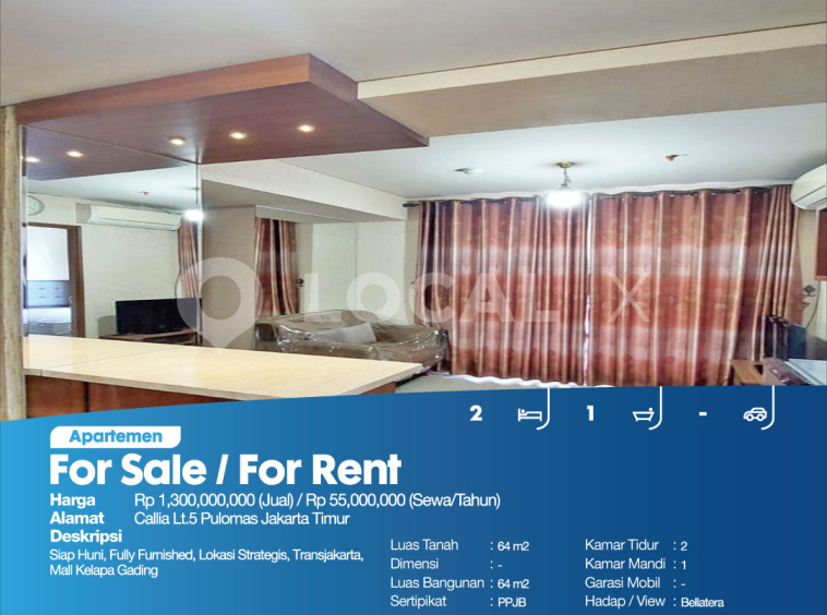 • Description: Siap Huni, Fully Furnished, Lokasi Strategis, Transjakarta, Mall Kelapa Gading