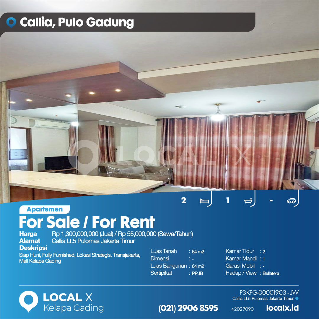 P3KPG-00001903-JW-S (For Rent – Sewa) Apartemen Callia Lt.5 Pulomas Jakarta Timur
