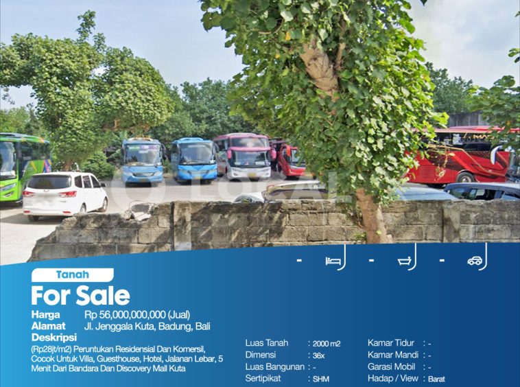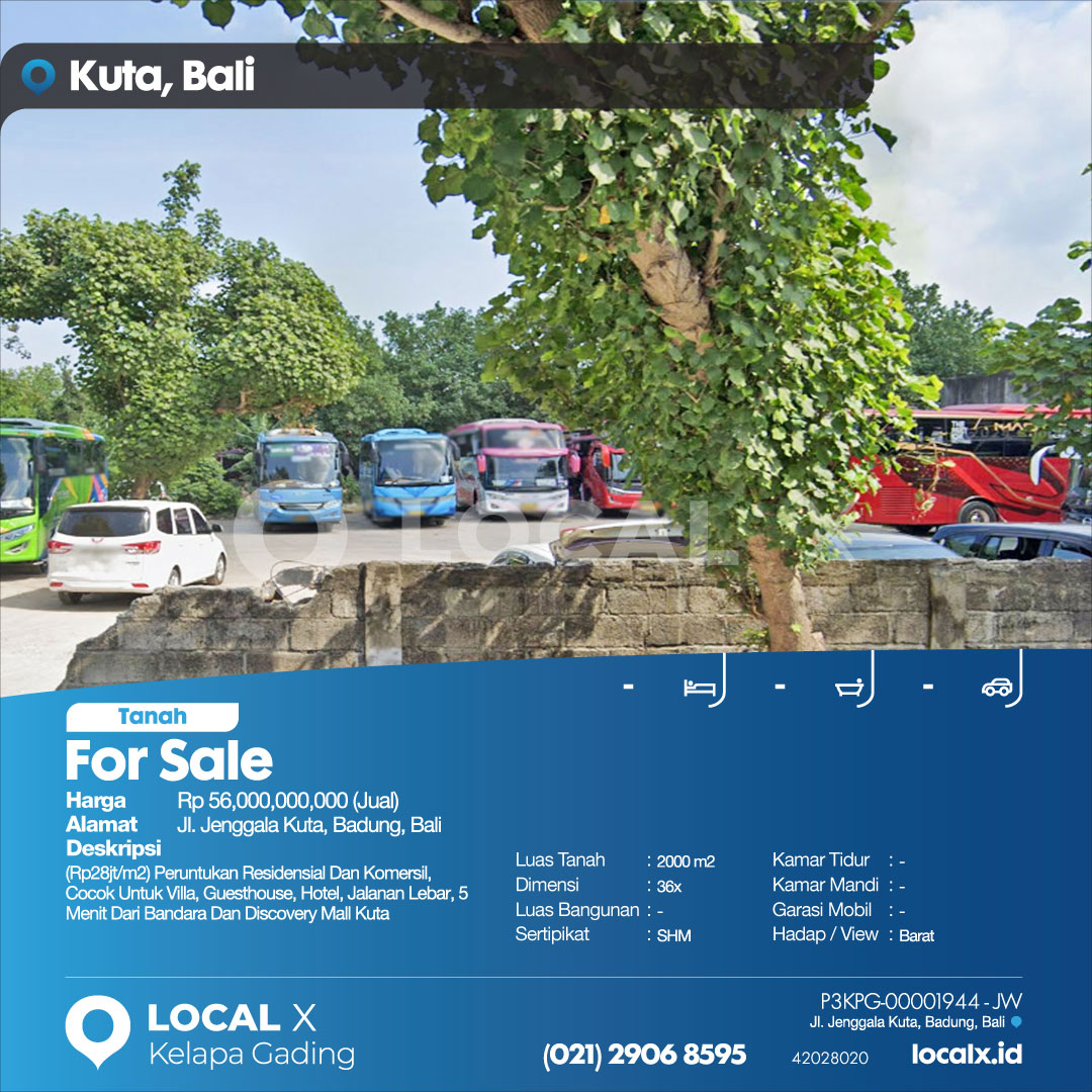• Description: (Rp28jt/m2) Peruntukan Residensial Dan Komersil, Cocok Untuk Villa, Guesthouse, Hotel, Jalanan Lebar, 5 Menit Dari Bandara Dan Discovery Mall Kuta