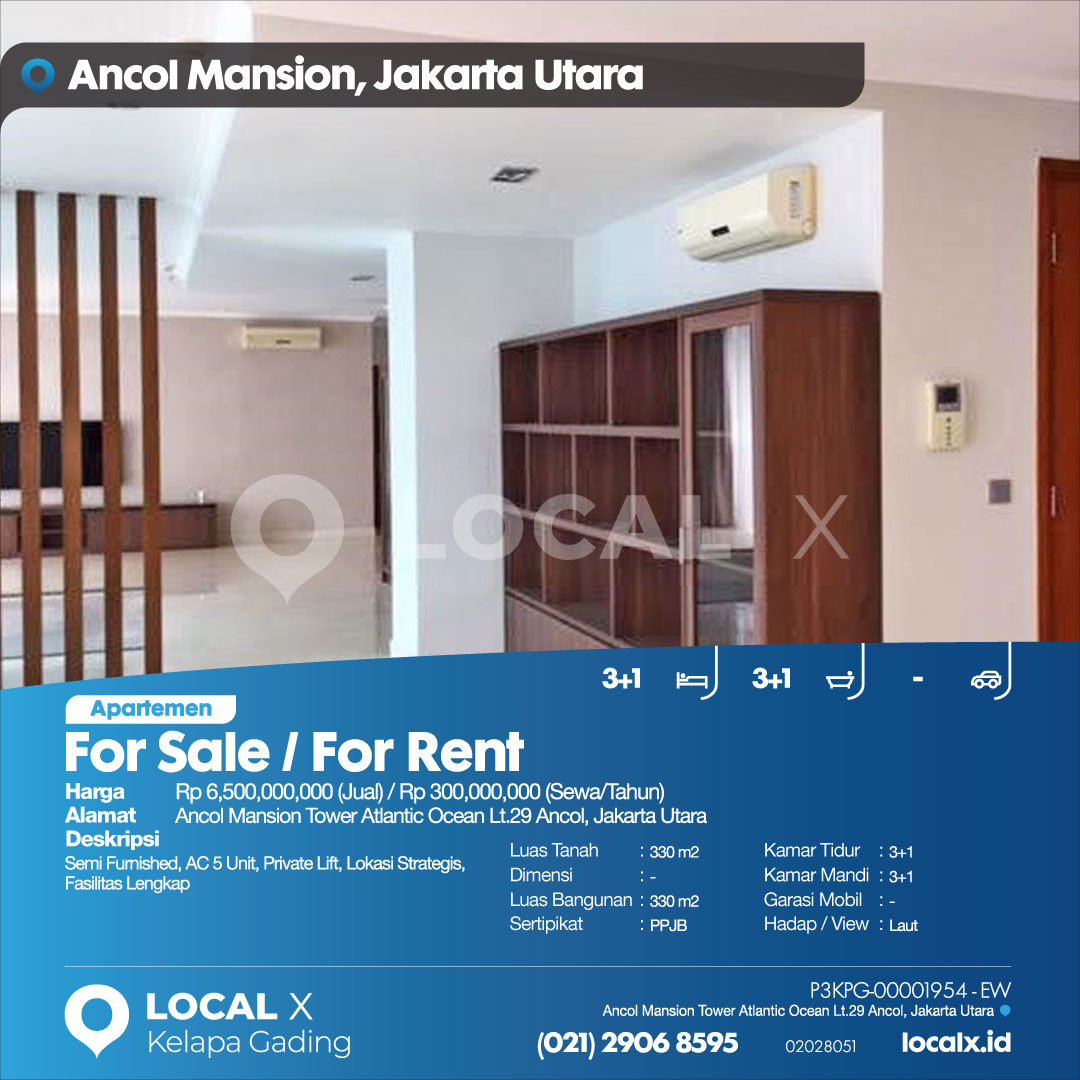 Semi Furnished, AC 5 Unit, Private Lift, Lokasi Strategis, Fasilitas Lengkap