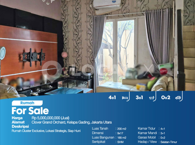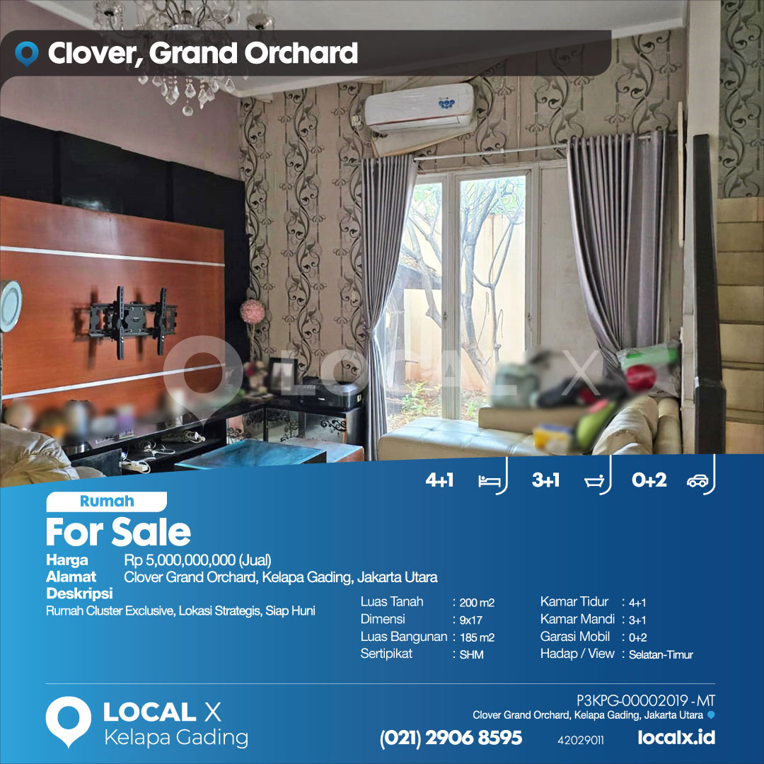 P3KPG-00002019-MT-J (For Sale – Jual) Rumah Clover Grand Orchard, Kelapa Gading, Jakarta Utara