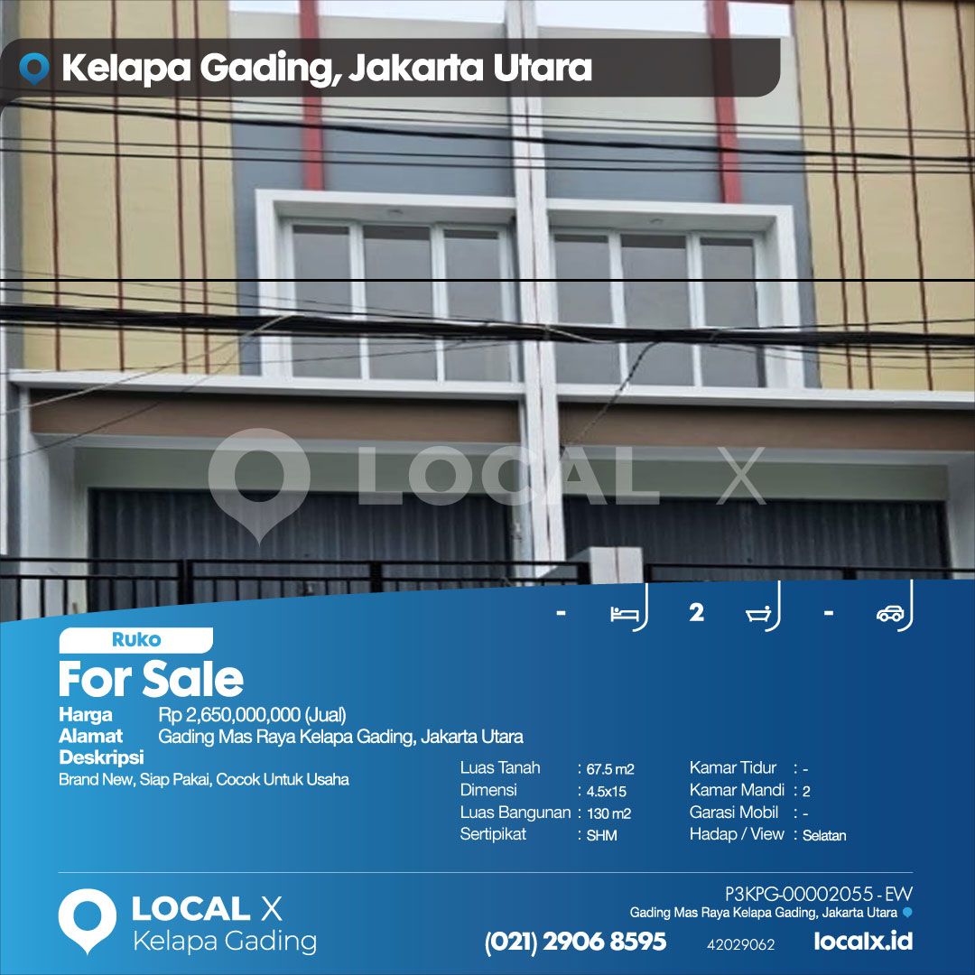 P3KPG-00002055-EW-J (For Sale – Jual) Ruko Gading Mas Raya Kelapa Gading, Jakarta Utara