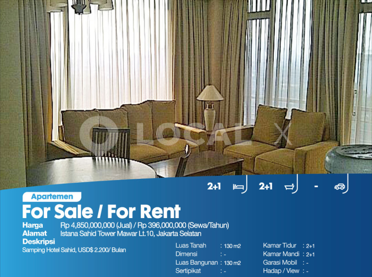 Samping Hotel Sahid, USD$ 2.200/ Bulan