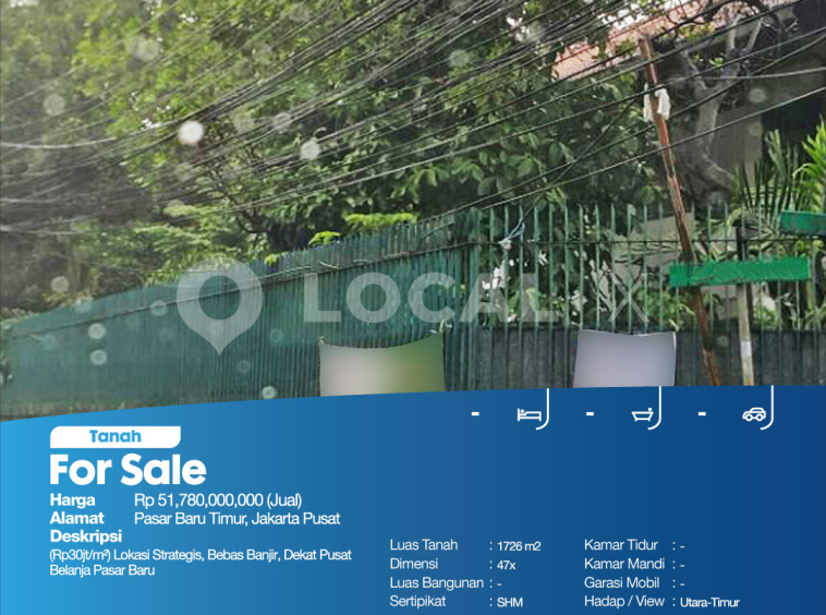 • Description: (Rp30jt/m²) Lokasi Strategis, Bebas Banjir, Dekat Pusat Belanja Pasar Baru