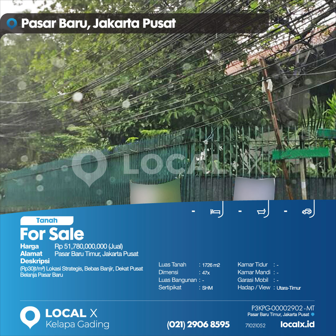 P3KPG-00002902-MT-J (For Sale – Jual) Tanah Kavling Pasar Baru Timur, Jakarta Pusat