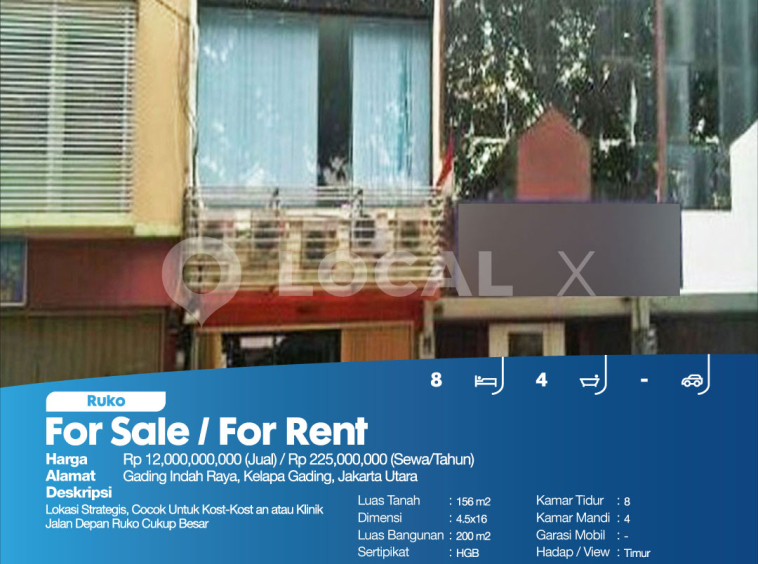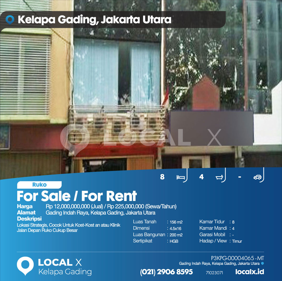 P3KPG-00004065-MT-J (For Sale – Jual) Ruko Gading Indah Raya, Kelapa Gading, Jakarta Utara